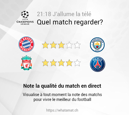 Donnez une note au match que vous êtes en train de regarder et surveillez que vous ne passez pas à côté du match de l'année.